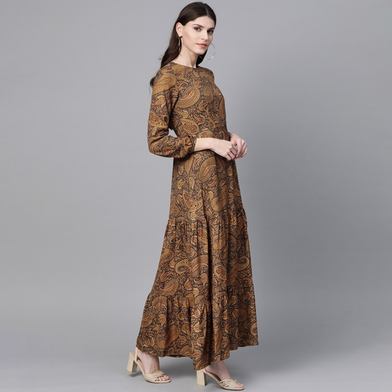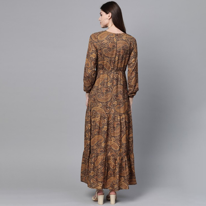 Brown & Black Ethnic Motifs Print Maxi Dress