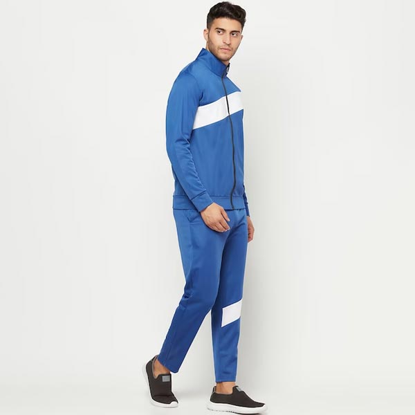 Blue and white colourblocked stretchable tracksuit