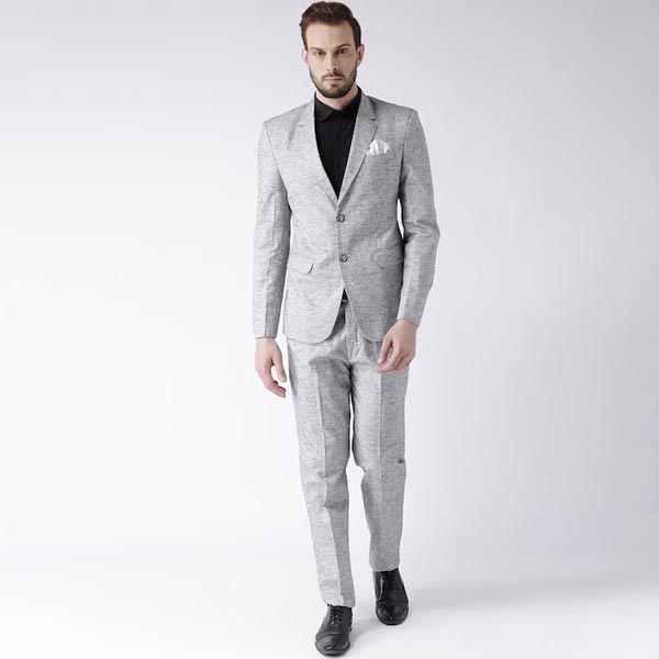 Men Grey Solid Single-Breasted 2-Piece Formal Suit