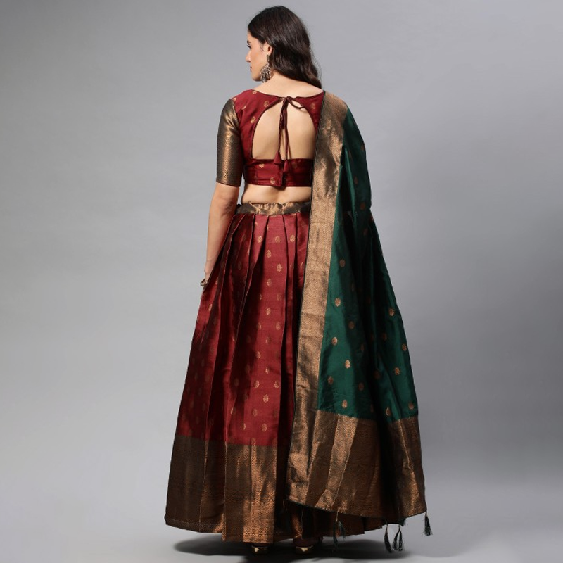 Woven Design Semi-Stitched Lehenga & Unstitched Blouse With Dupatta